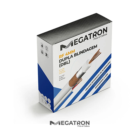 O cabo MEGATRON COAXIAL RF 0,4mm é composto por condutor central de Alumínio Cobreado e dois condutores de alimentação externos flexíveis em 100% cobre. Possui isolante de polietileno expandido, dupla blindagem com fita de poliéster aluminizada e trança de fios de alumínio cobertos em cobre, além de cobertura externa de PVC flexível. Indicado para sistemas CFTV Analógico HD nos padrões TVI, CVI e AHD, oferece imagens nítidas e estáveis, sendo ideal para residências e comércios.