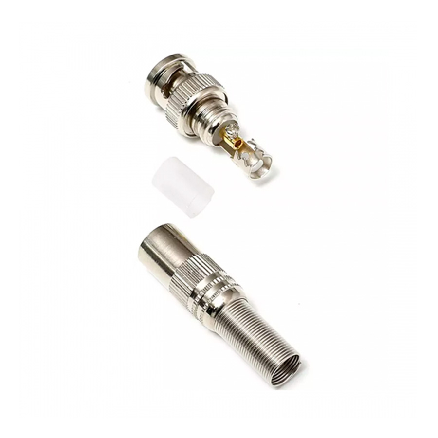 Conector BNC Mola Parafuso 6mm é recomendado para instalação de câmeras de segurança CFTV. Não precisa de solda. Possui um jogo de molas que ajuda a evitar quebra no cabo da câmera Este modelo de conector é bem resistente e possui a mola na entrada do cabo que diminui os impactos nas movimentações.