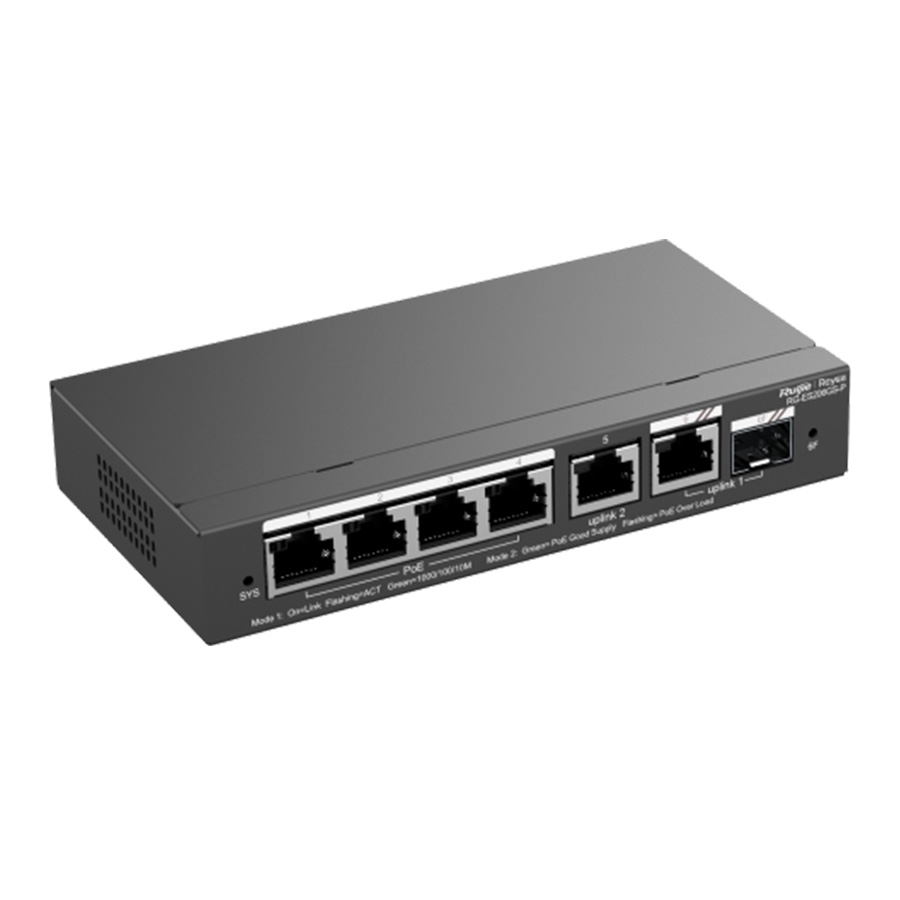 SWITCH 4 PORTAS POE+ GE + 1 PORTA GE + 1 PORTA COMBO SFP GERENCIAVEL (L2) RG-ES206GS-P